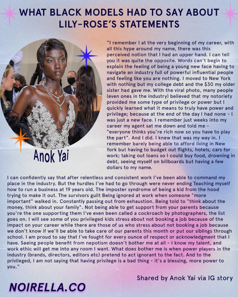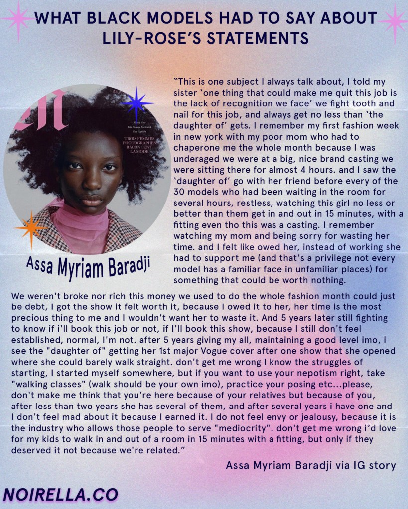 WHAT BLACK MODELS HAD TO SAY ABOUT LILY-ROSE’S STATEMENTS